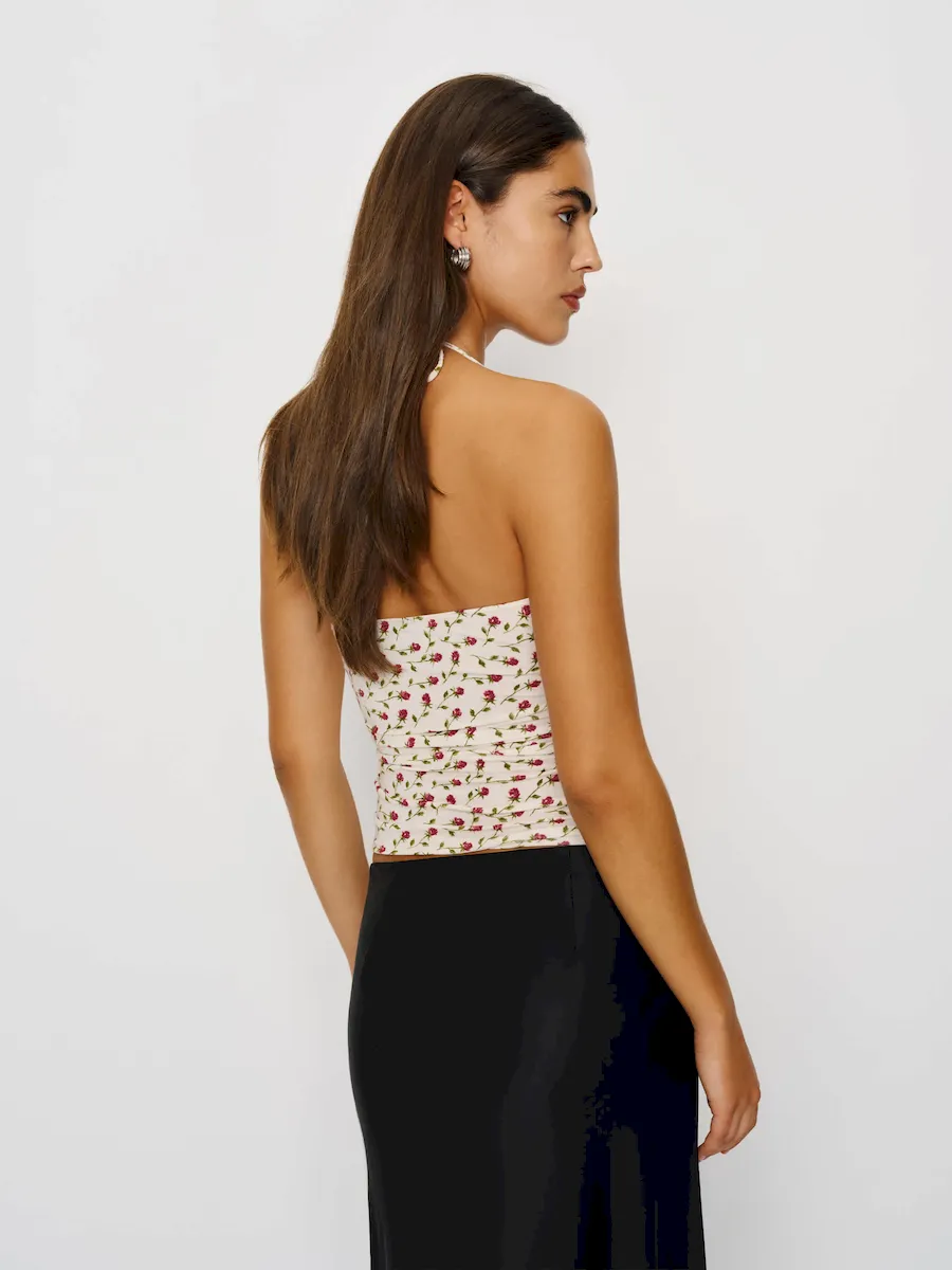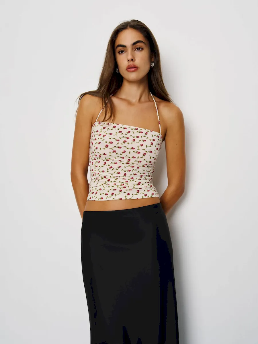 The model is wearing a size XS and is 5′ 9.5″, 24″ waist, 34.5″ hips, 34″ bust.