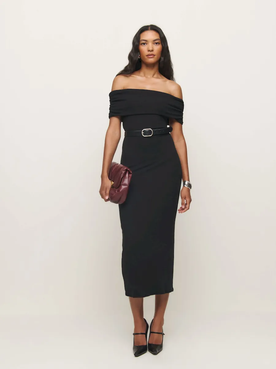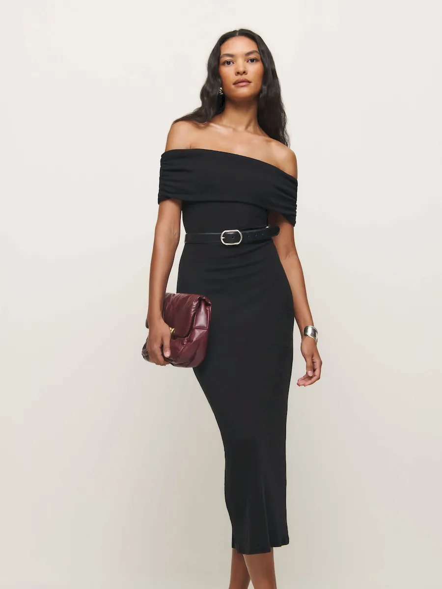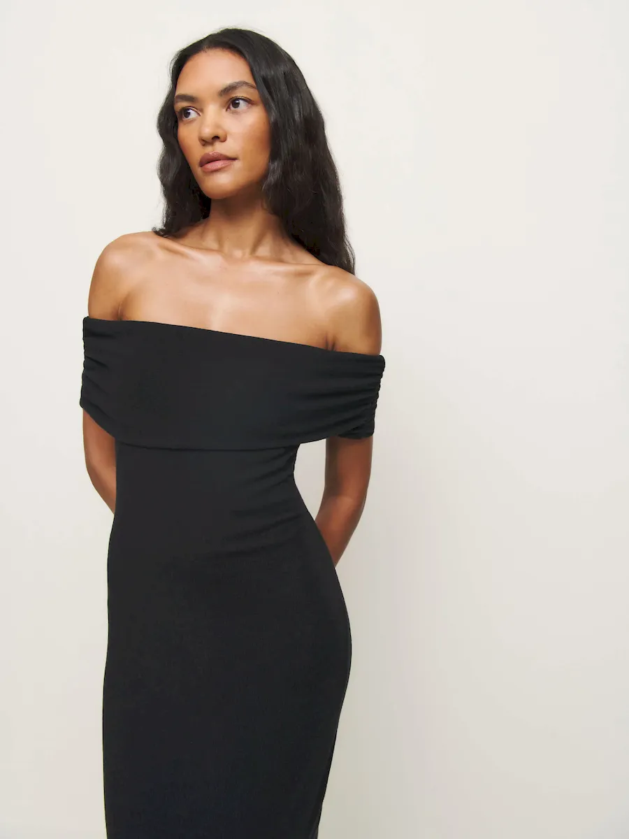off the shoulder neckline.