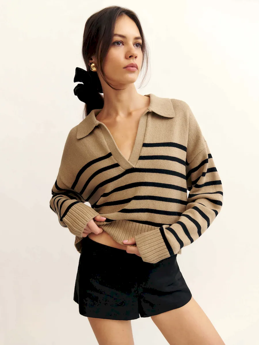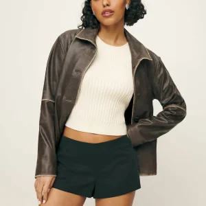 The model is wearing a size 0 and has a 24″ waist, 34″ hips.