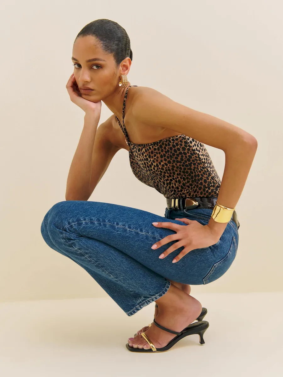 The model is wearing a size XS and is 5’10”, 23″ waist, 35.5″ hips, 32.5″ bust.