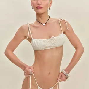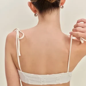 Deadstock Eyelet Fabric: 95% Polyester, 5% Spandex. Handwash, do not bleach, do not dry clean, do not iron, dry in the shade.