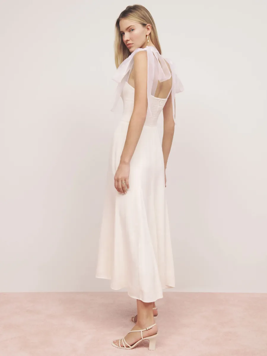 The model is wearing a size 2 and is 5’10”, 24″ waist, 34.5″ hips, 32.5″ bust.