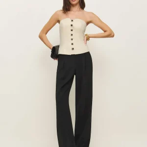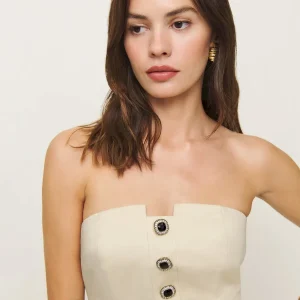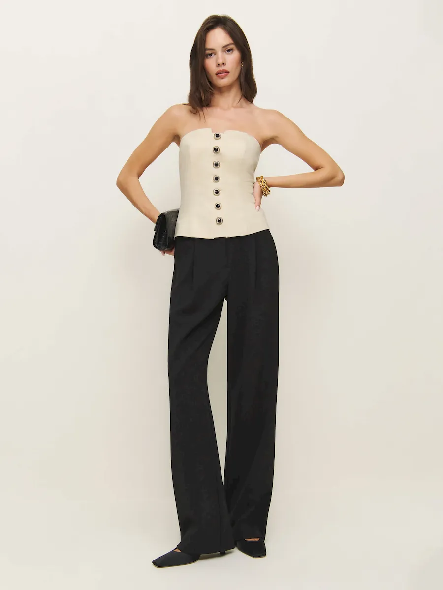 The model is wearing a size 0 and is 5’9″, 24″ waist, 34″ hips, 32″ bust.