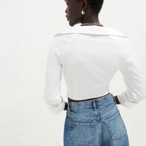 The model is wearing a size 0 and is 5’9″, 24″ waist, 34″ hips, 32″ bust.