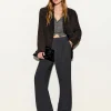 The model is wearing a size 0 and has a 25″ waist, 34.5″ hips.