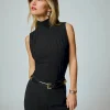 The model is wearing a size XS and is 5’9″, 25″ waist, 35″ hips, 32″ bust.