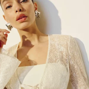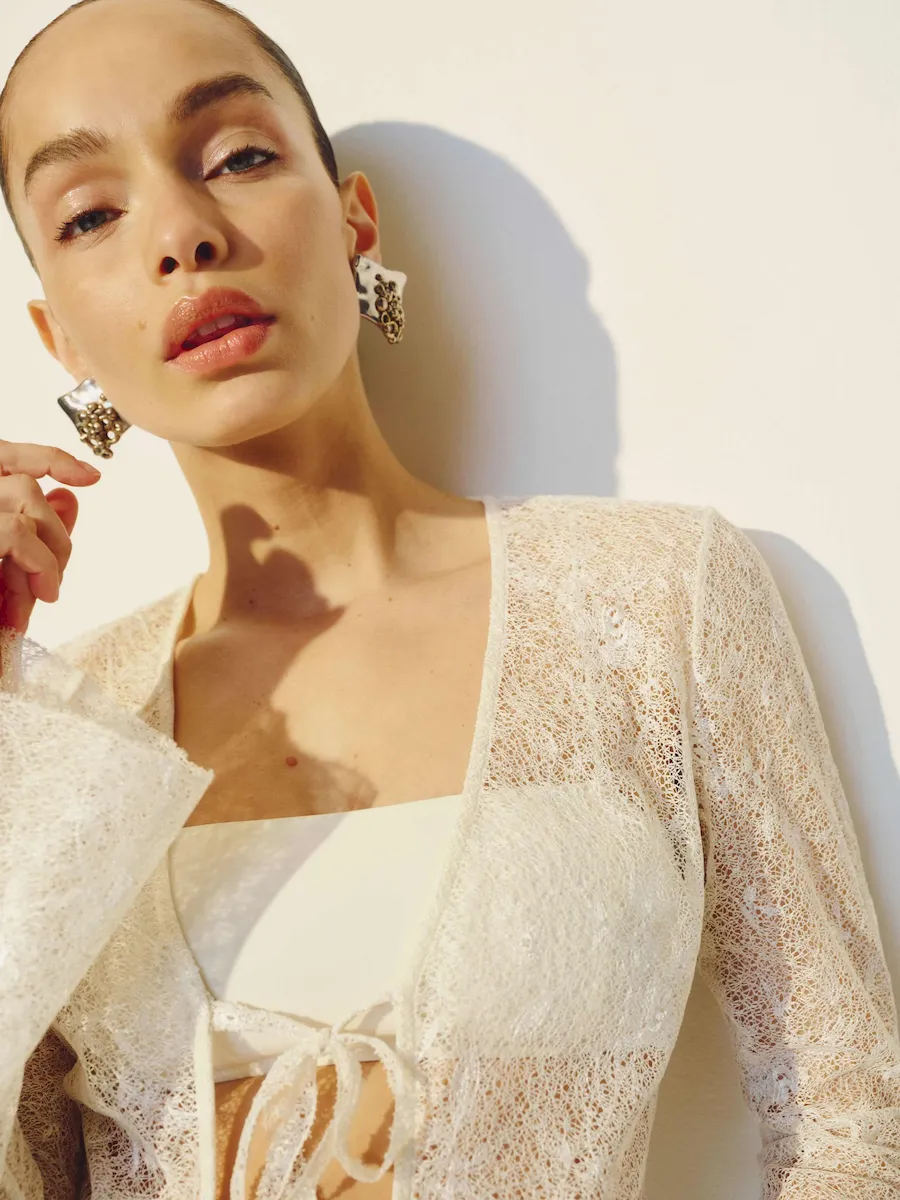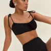 The model is wearing a size XS and is 5’9″, 23″ waist, 34″ hips, 32″ bust.