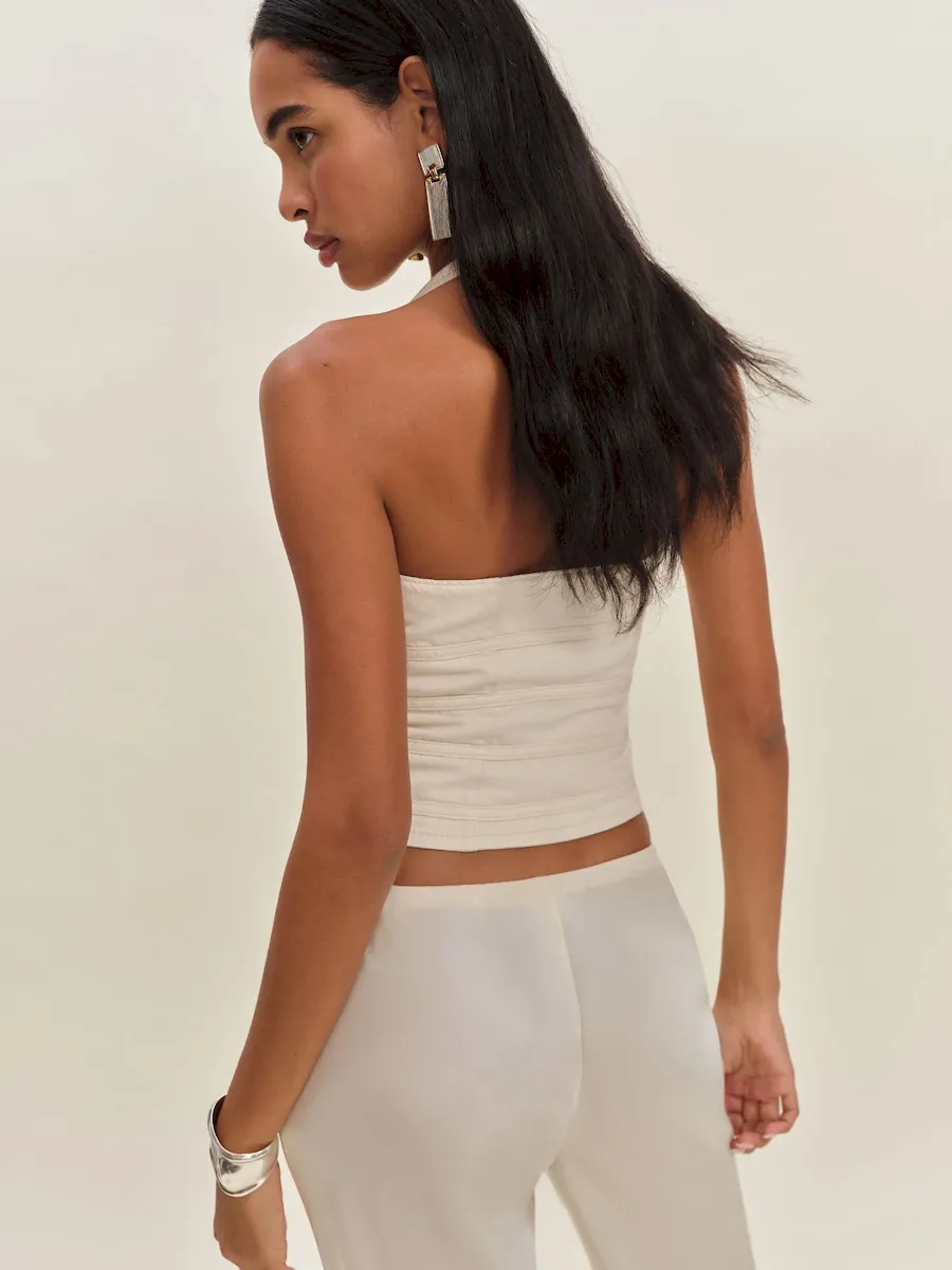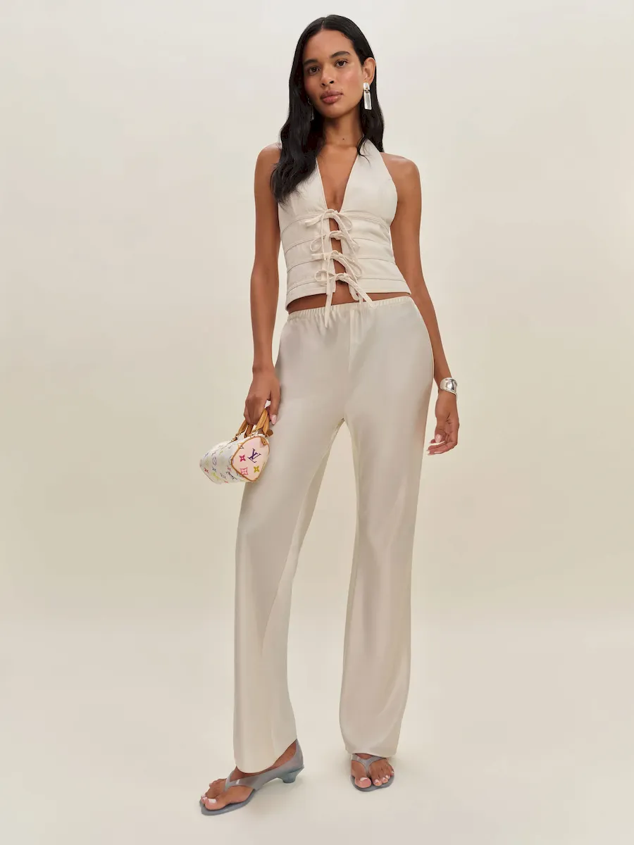 The model is wearing a size 0 and has a 24″ waist, 35″ hips.