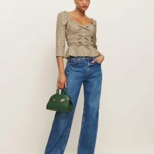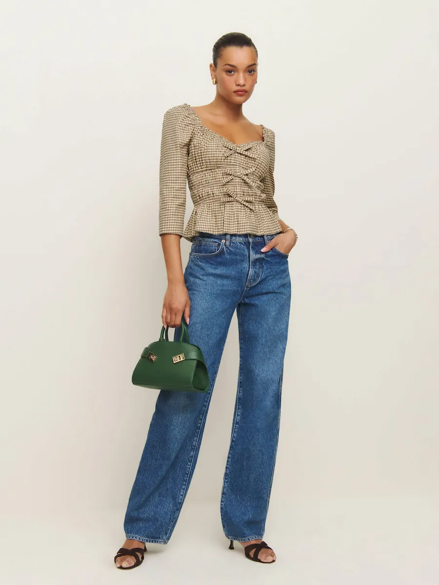 The model is wearing a size 0 and is 5’10”, 23″ waist, 34″ hips, 32″ bust.