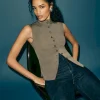 The model is wearing a size 0 and has a 23.5″ waist, 34″ hips.
