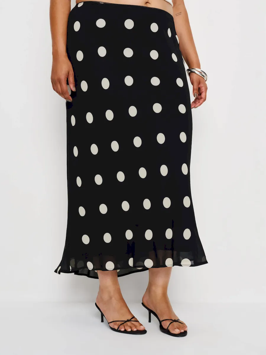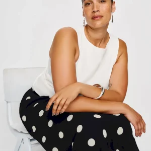 The model is wearing a size 14 and has a 29″ waist, 43.5″ hips.