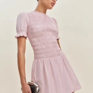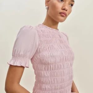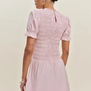 full bodice smocking, crew neckline.