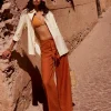 The model is wearing a size 0 and is 5’10”, 23″ waist, 34″ hips, 32″ bust.
