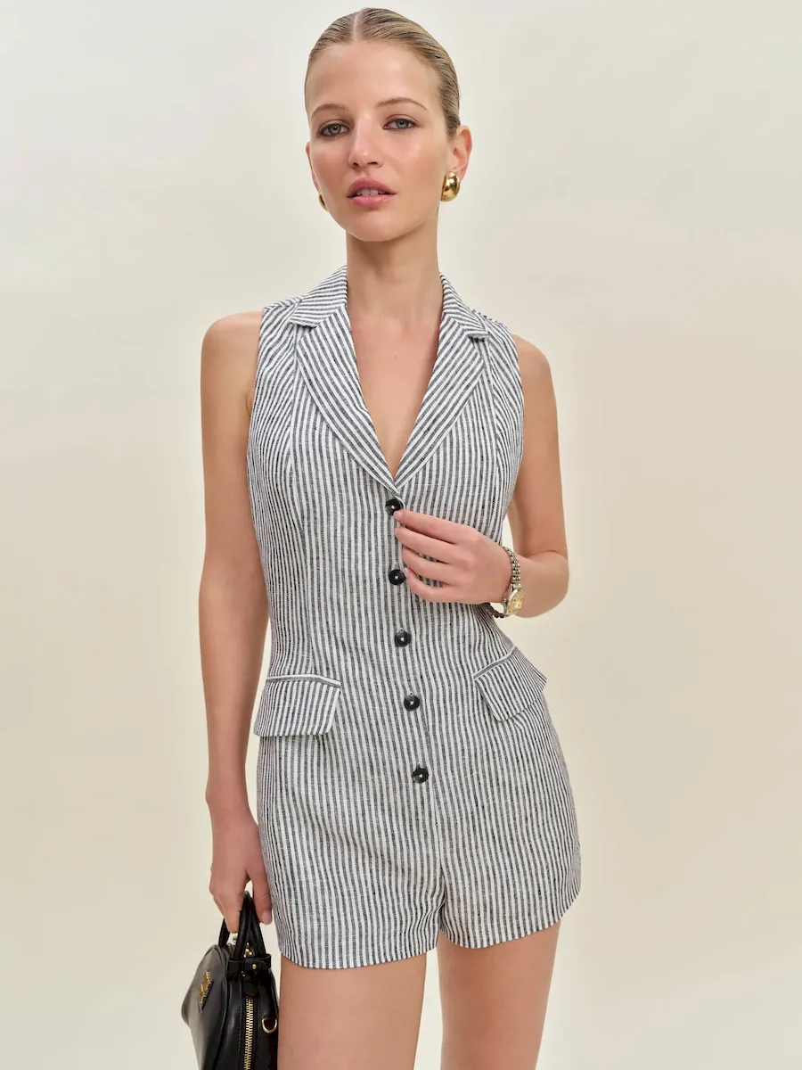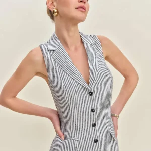 The model is wearing a size 0 and is 5’7″, 23″ waist, 34″ hips, 32″ bust.