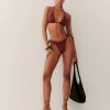 The model is wearing a size 0 and is 5’10”, 23″ waist, 35.5″ hips, 32.5″ bust.