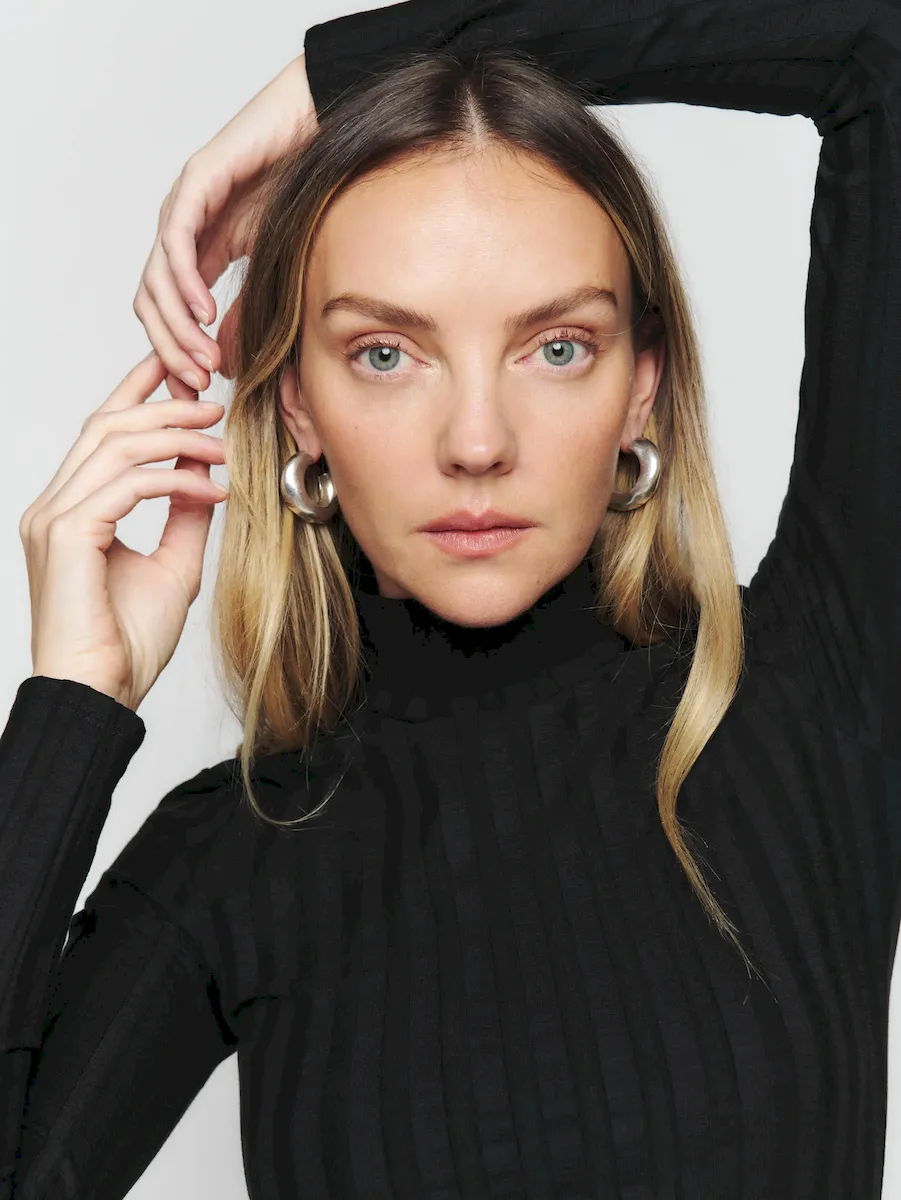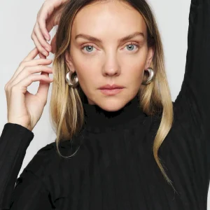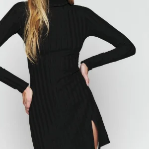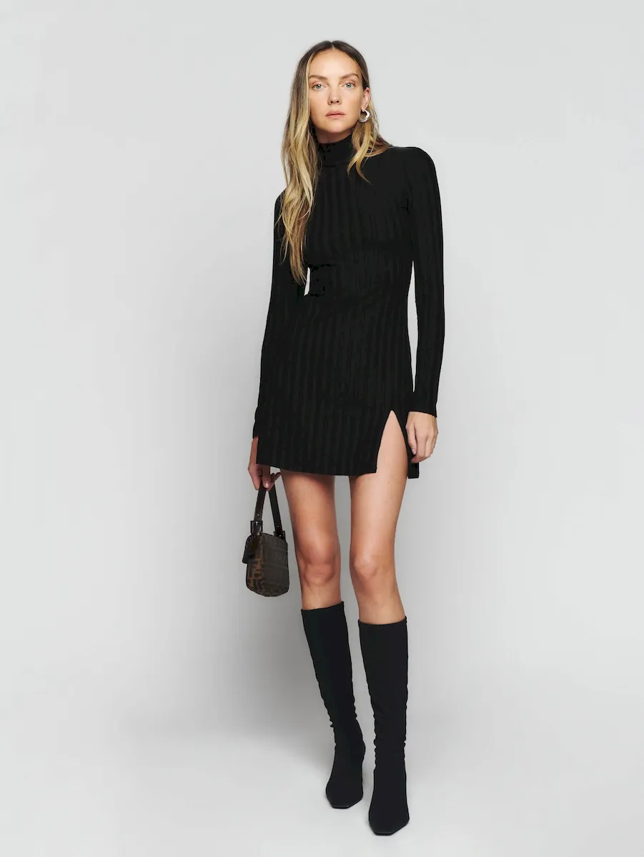 turtleneck, side slit.