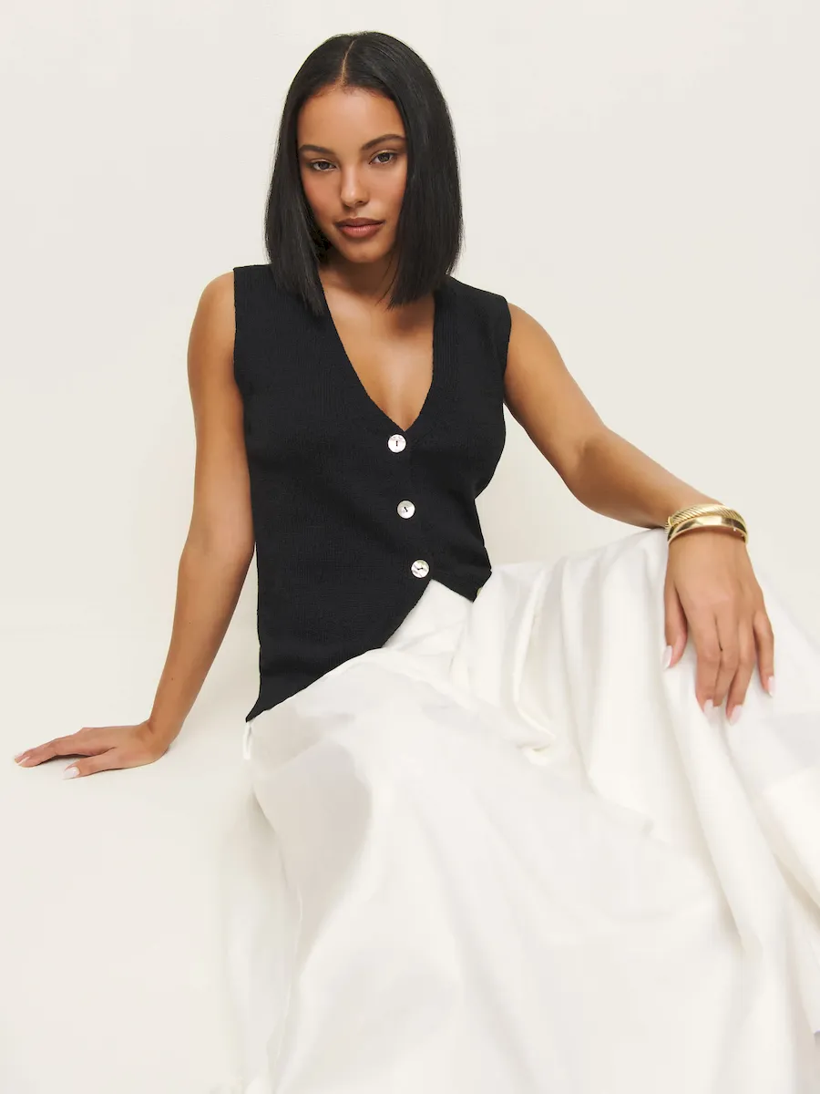 The model is wearing a size XS and is 5’9″, 23.5″ waist, 34″ hips, 34″ bust.