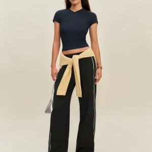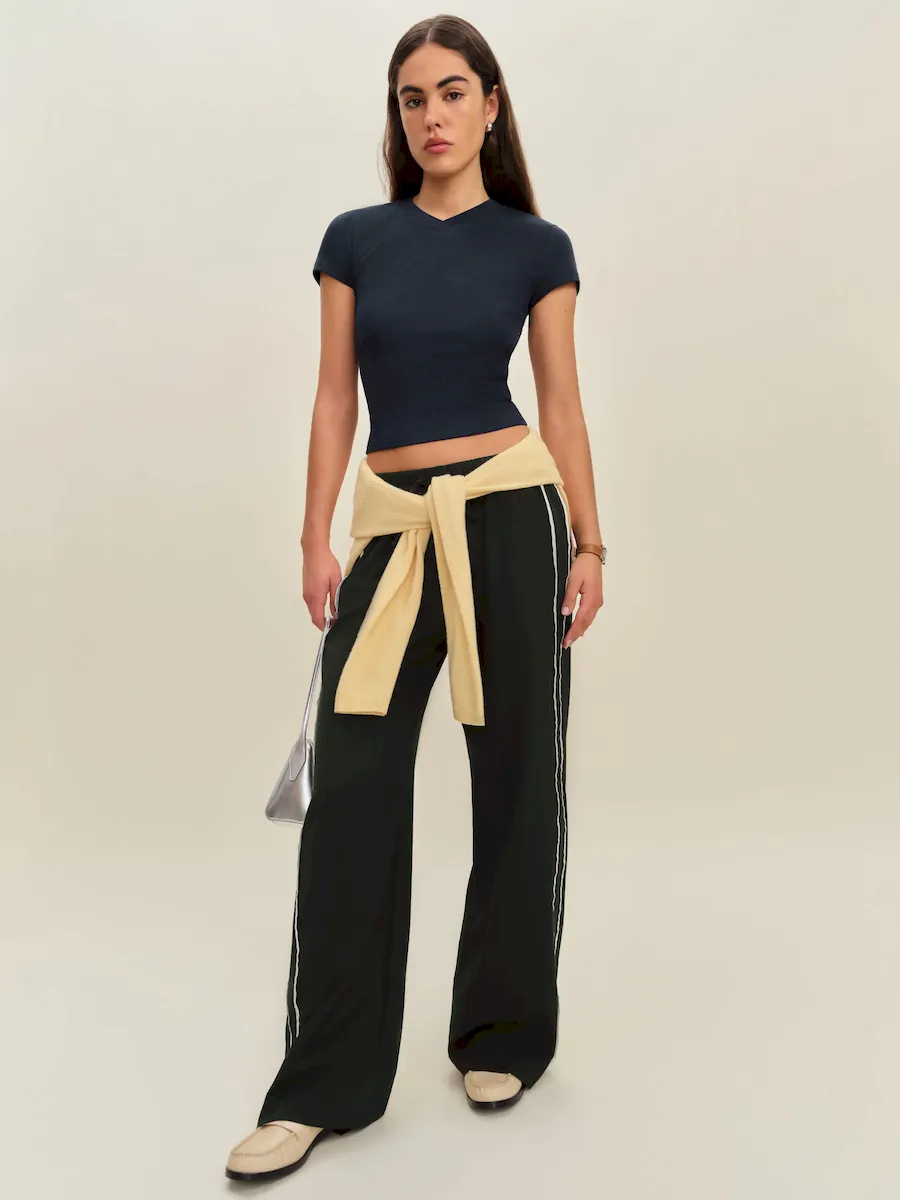 The model is wearing a size XS and is 5′ 9.5″, 24″ waist, 34.5″ hips, 34″ bust.
