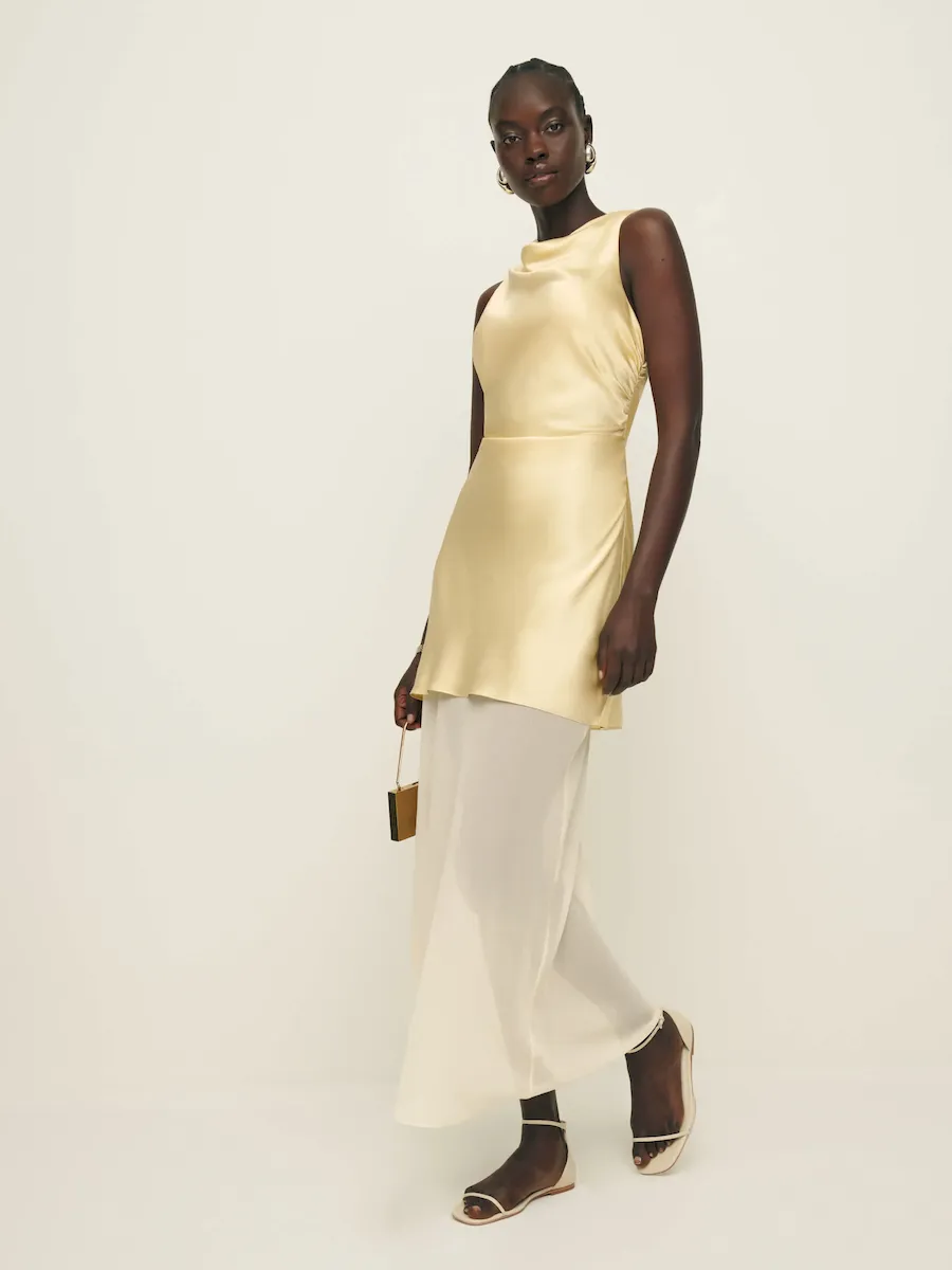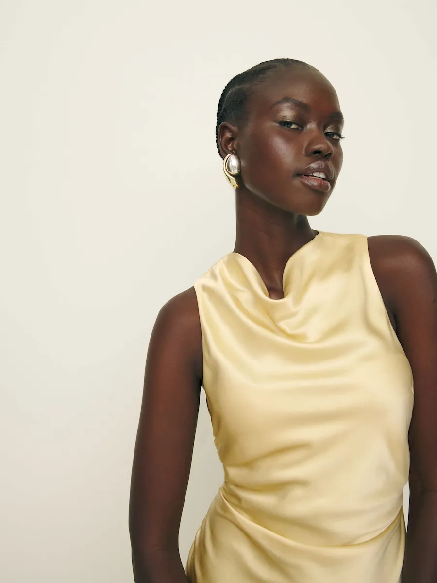 This is a lightweight silk charmeuse fabric – 100% silk. Dry clean only. More onfabric & care.