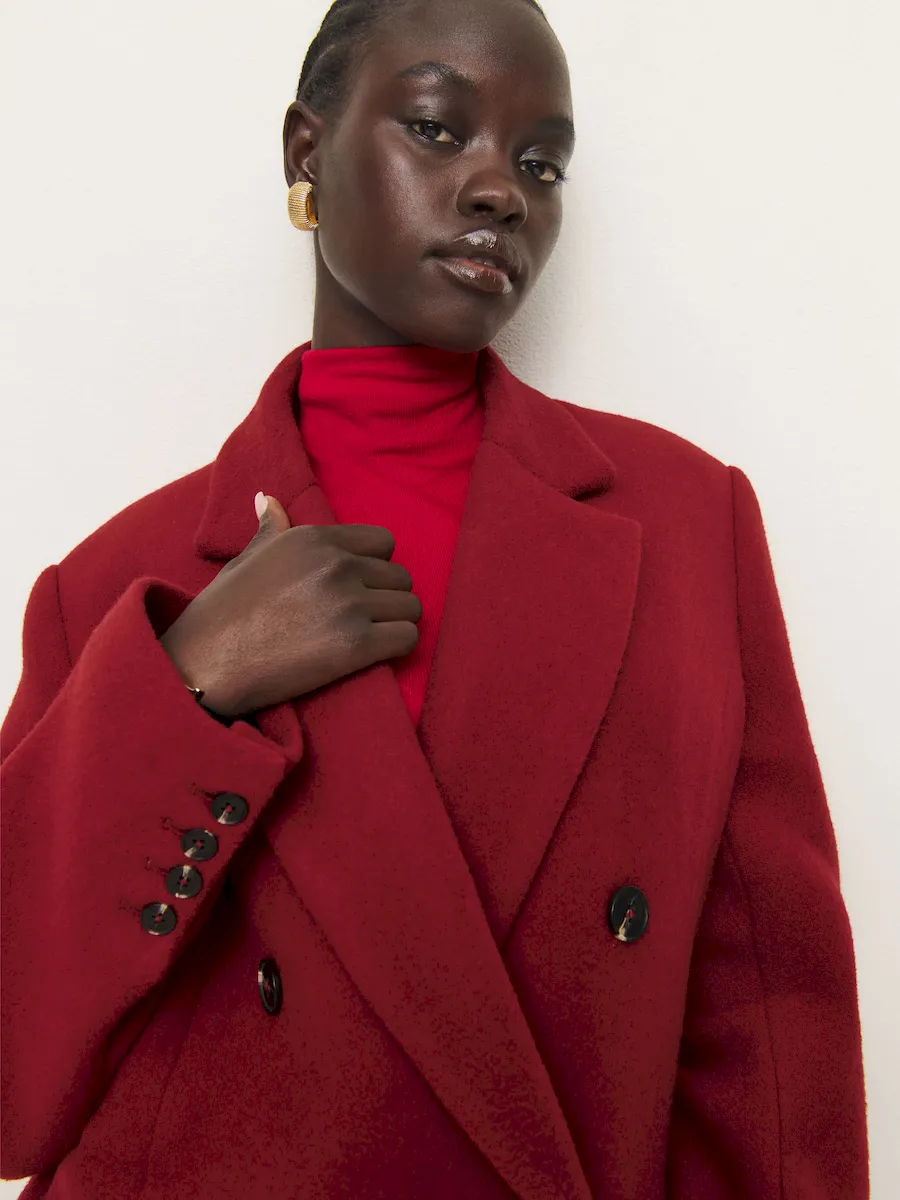 This is a heavy weight outerwear fabric from Manteco made of 70% recycled MWool®, 12% recycled polyamide, and 18% polyamide. Dry clean only. More onfabric & care.