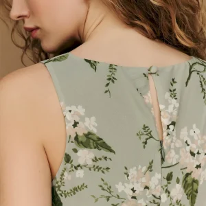 The model is wearing a size 0 and is 5’10”, 23″ waist, 35.5″ hips, 32.5″ bust.