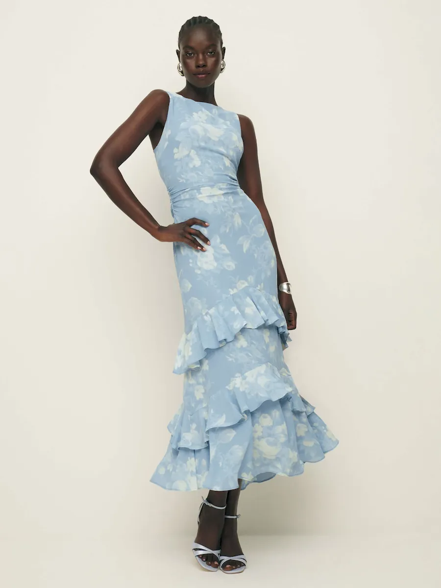 back zipperand side ruching.