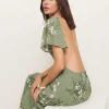 The model is wearing a size 0 and is 5’7″, 23″ waist, 34″ hips, 32″ bust.