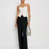 The model is wearing a size 0 and is 5’10.5″, 23″ waist, 34.5″ hips, 31.5″ bust.