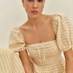 back smocking, curve neckline.