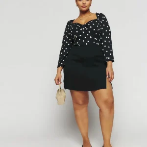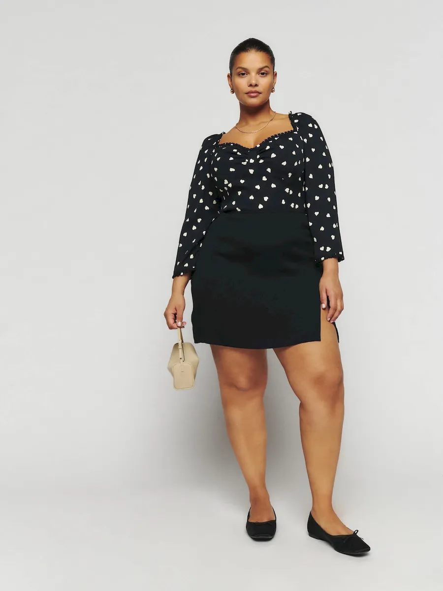 The model is wearing a size 14 and has a 33″ waist, 50″ hips.