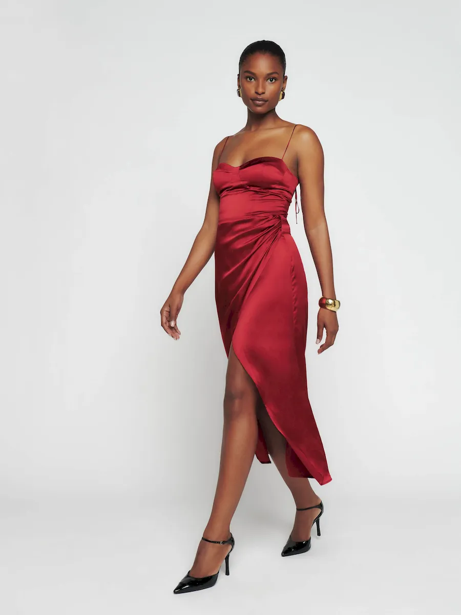This is a lightweight silk charmeuse fabric – 100% silk. Dry clean only. More onfabric & care.
