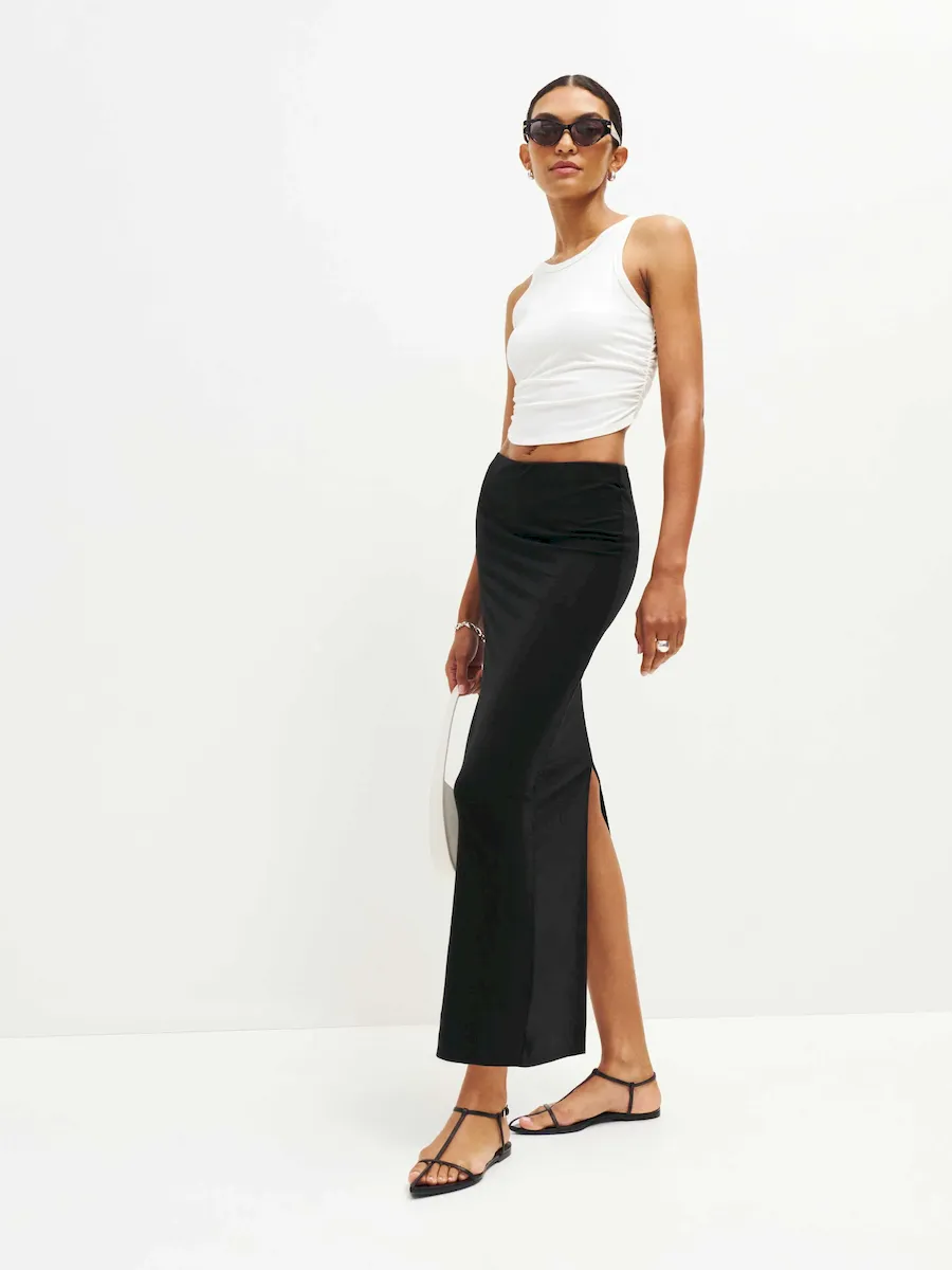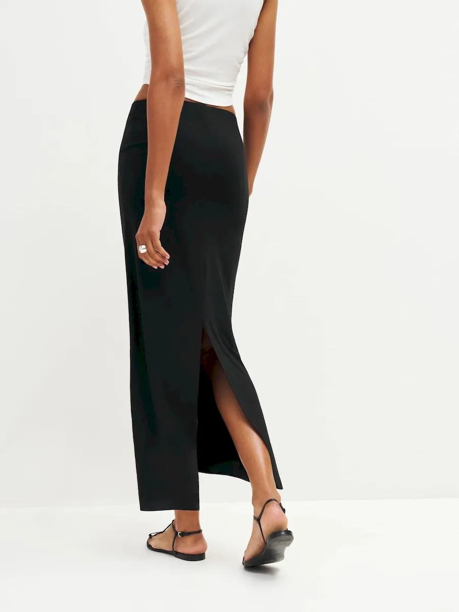 The model is wearing a size XS and has a 24″ waist, 34″ hips.