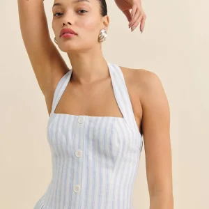 The model is wearing a size 0 and is 5’10”, 23″ waist, 34″ hips, 32″ bust.