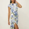 The model is wearing a size 2 and is 5’9″, 25″ waist, 36″ hips, 33.5″ bust.