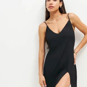 adjustable straps, v-neck, side slit.