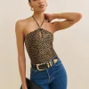 The model is wearing a size XS and is 5′ 9.5″, 24″ waist, 34.5″ hips, 34″ bust.