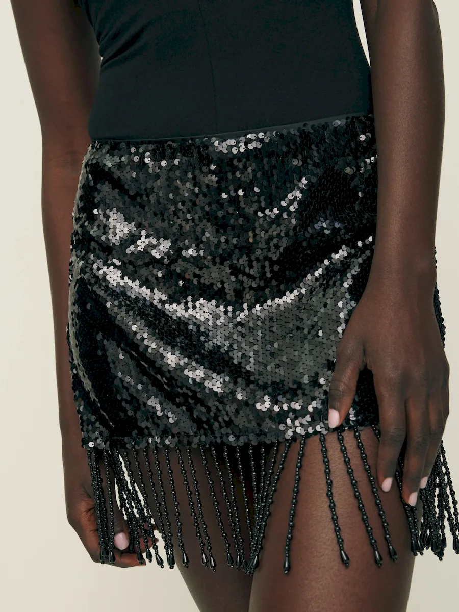 The model is wearing a size 0 and has a 25″ waist, 35″ hips.