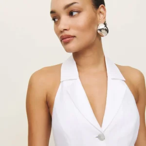 The model is wearing a size 0 and is 5’10”, 23″ waist, 34″ hips, 32″ bust.
