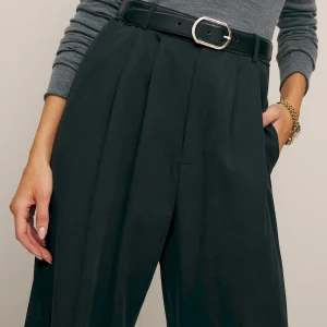 belt loops,finished hem,front buttons,pleated details,side pockets,the mason pant in sugar is slightly sheer,and zipper fly.