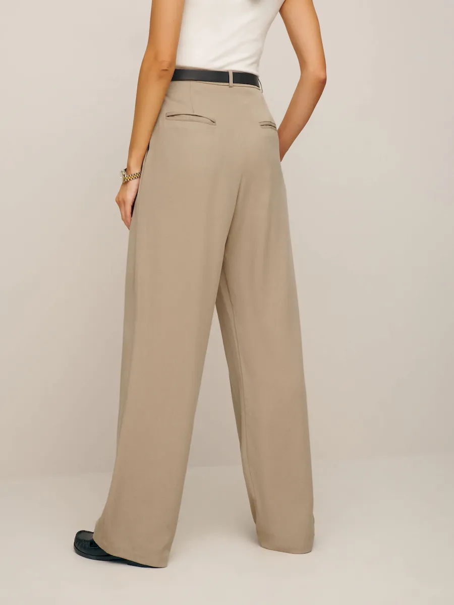 belt loops,finished hem,front buttons,pleated details,side pockets,the mason pant in sugar is slightly sheer,and zipper fly.