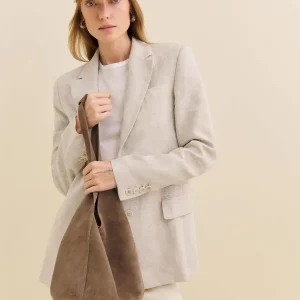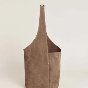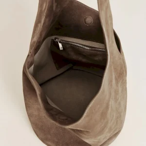 a slouchy bucket bag with a magnetic closureand interior zipper pocket.