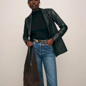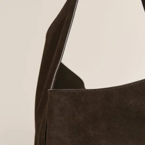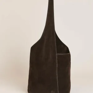 a slouchy bucket bag with a magnetic closureand interior zipper pocket.