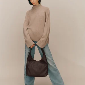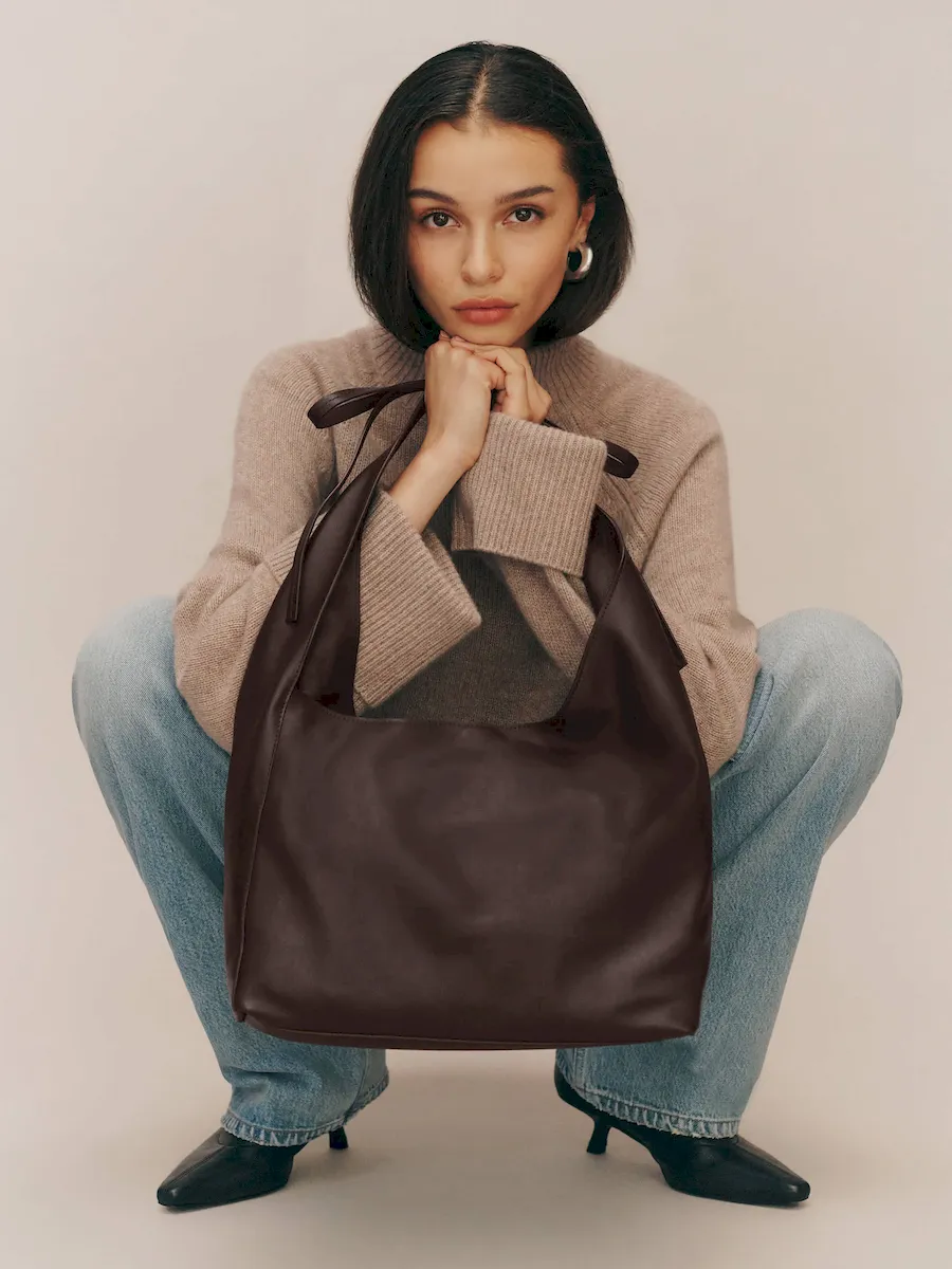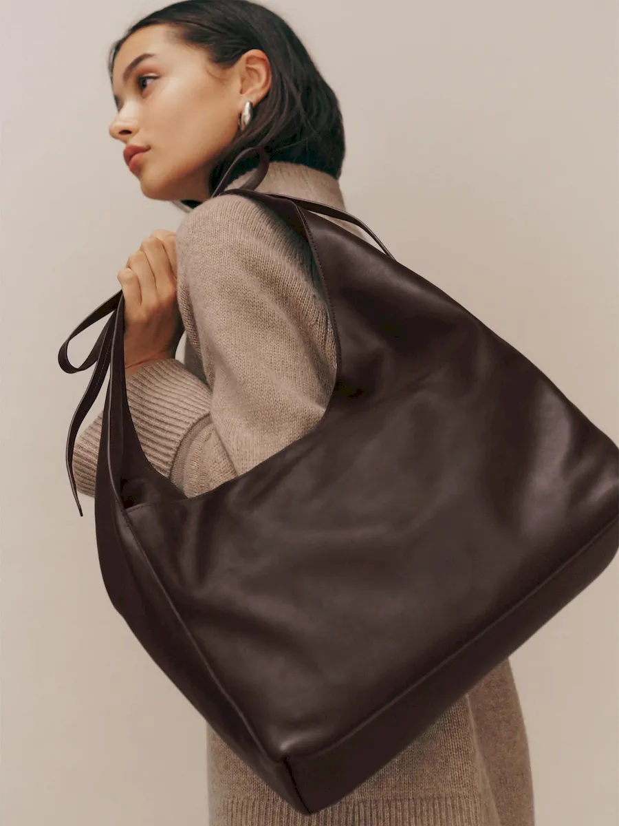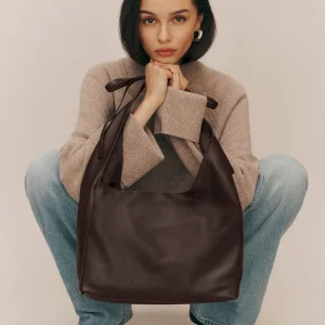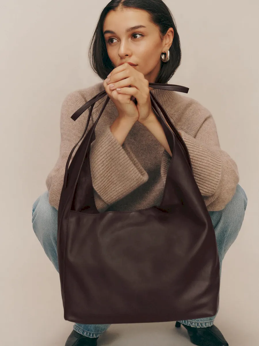 a slouchy tote with a magnetic closure,features a decorative tie detail,and inside zip pocket with a card holder.