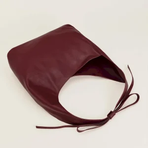 a slouchy tote with a magnetic closure,features a decorative tie detail,and inside zip pocket with a card holder.