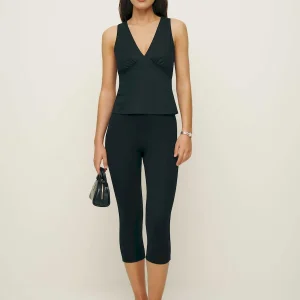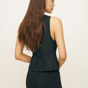 The model is wearing a size 0 and is 5′ 9.5″, 24″ waist, 34.5″ hips, 34″ bust.