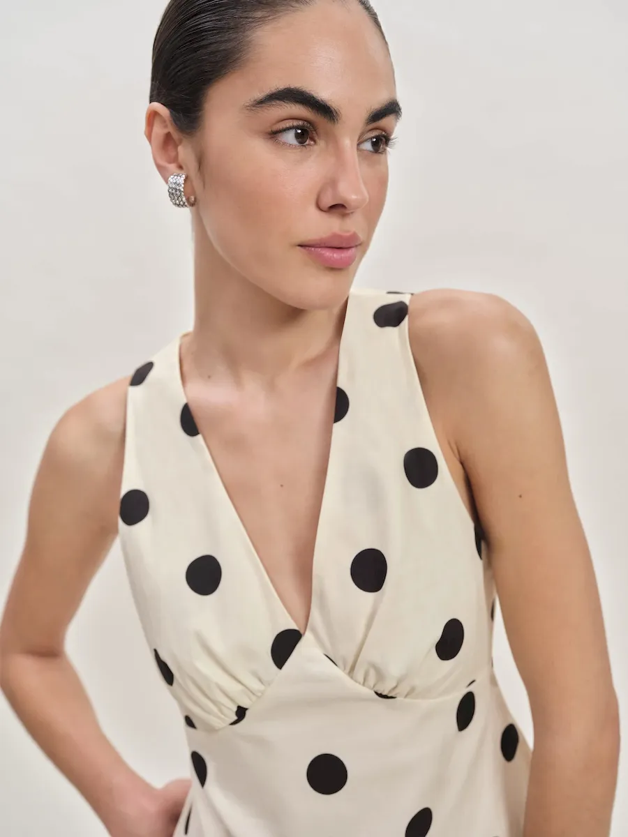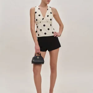The model is wearing a size 0 and is 5′ 9.5″, 24″ waist, 34.5″ hips, 34″ bust.
