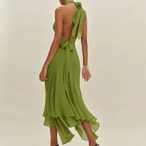 The model is wearing a size 0 and is 5’11”, 24″ waist, 35″ hips, 31″ bust.