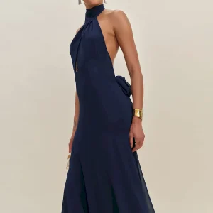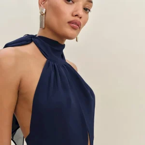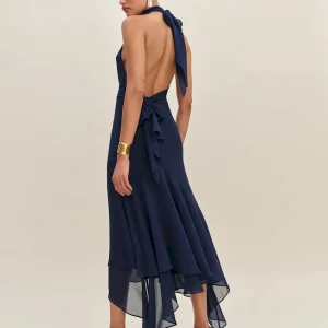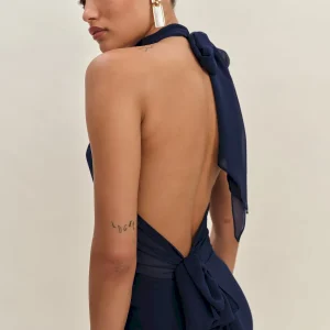 The model is wearing a size 0 and is 5’10”, 23″ waist, 34″ hips, 32″ bust.