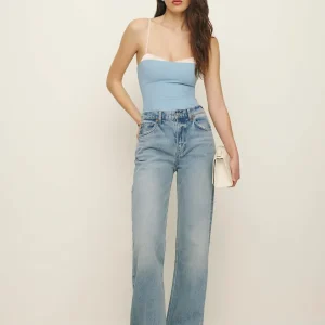 The model is wearing a size 0 and is 5′ 9.5″, 24″ waist, 34.5″ hips, 34″ bust.