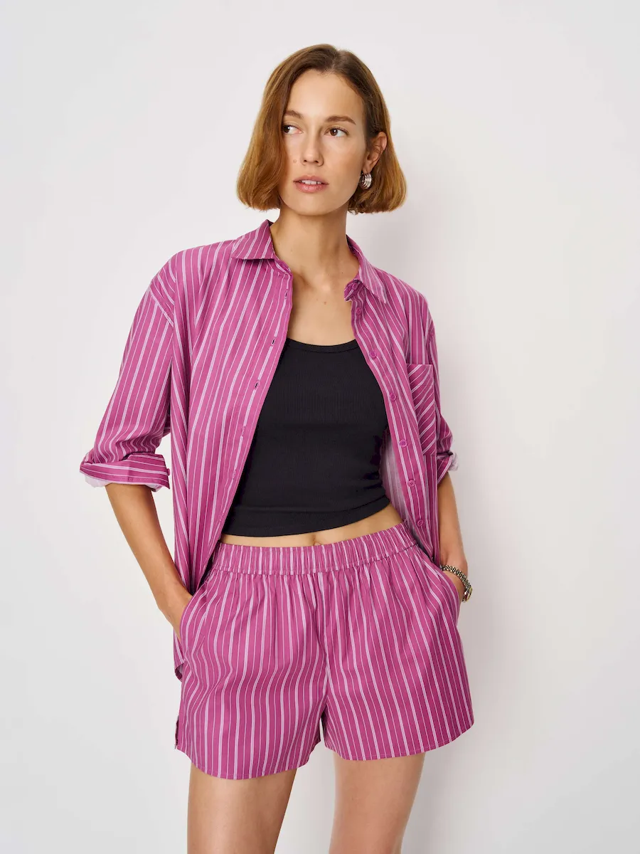 This woven fabric is made from 98% Organic Cotton and 2% Spandex. Wash cold + dry flat. More onfabric & care.